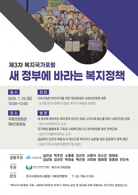 한국사회복지사협회, ‘새 정부에 바라는 복지정책’을 주제로 7월 22일(화) 제3차 복지국가포럼 개최