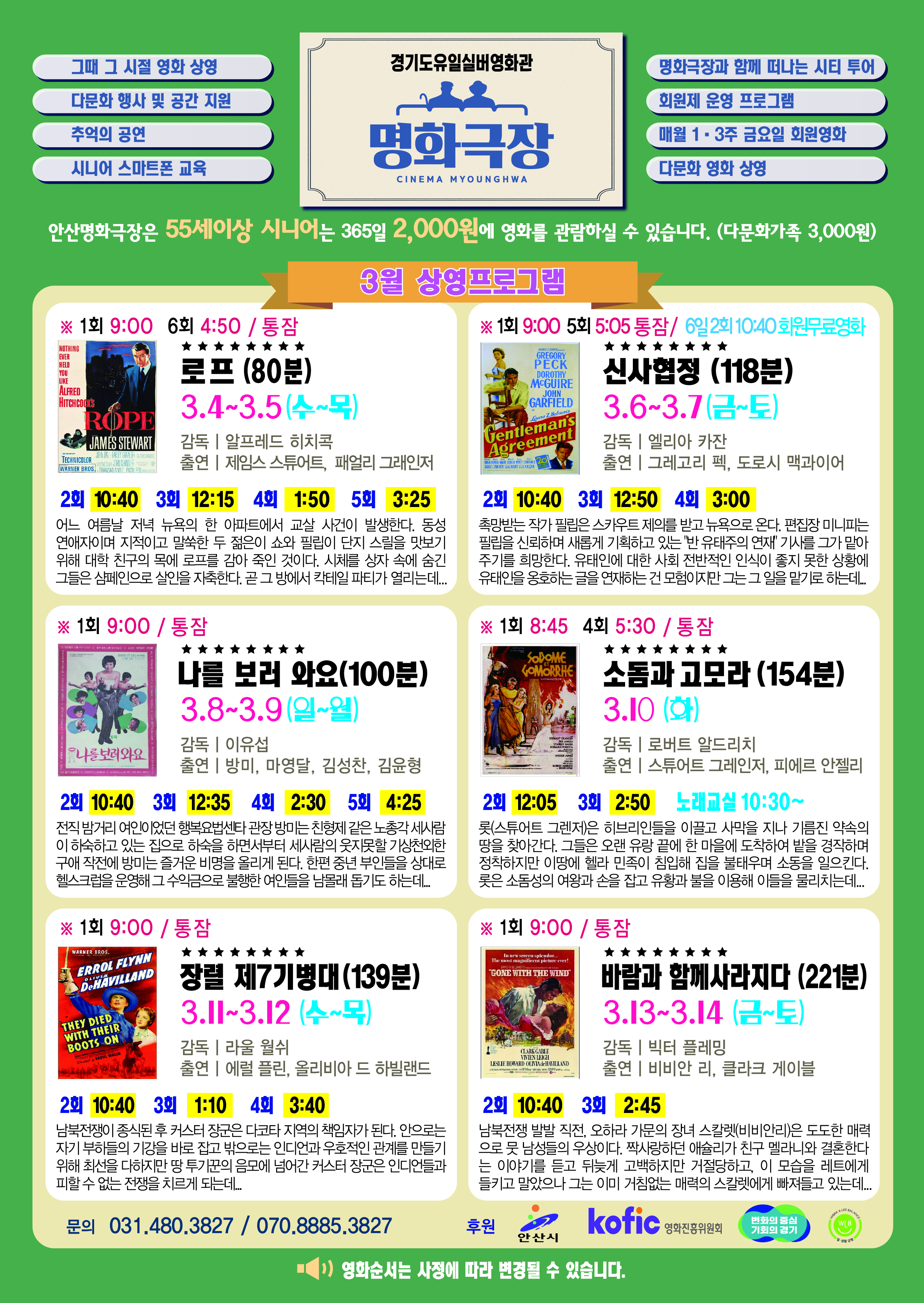 2026년 3월 상영 프로그램 작성자명화극장|작성시간26.02.23|조회수88 목록 댓글 0 글자크기 작게가 글자크기 크게가 다음검색 현재 게시글 추가 기능 열기 북마크 공유하기 신고 센터로 신고 댓글 댓글 0 댓글쓰기 답글쓰기 댓글 리스트