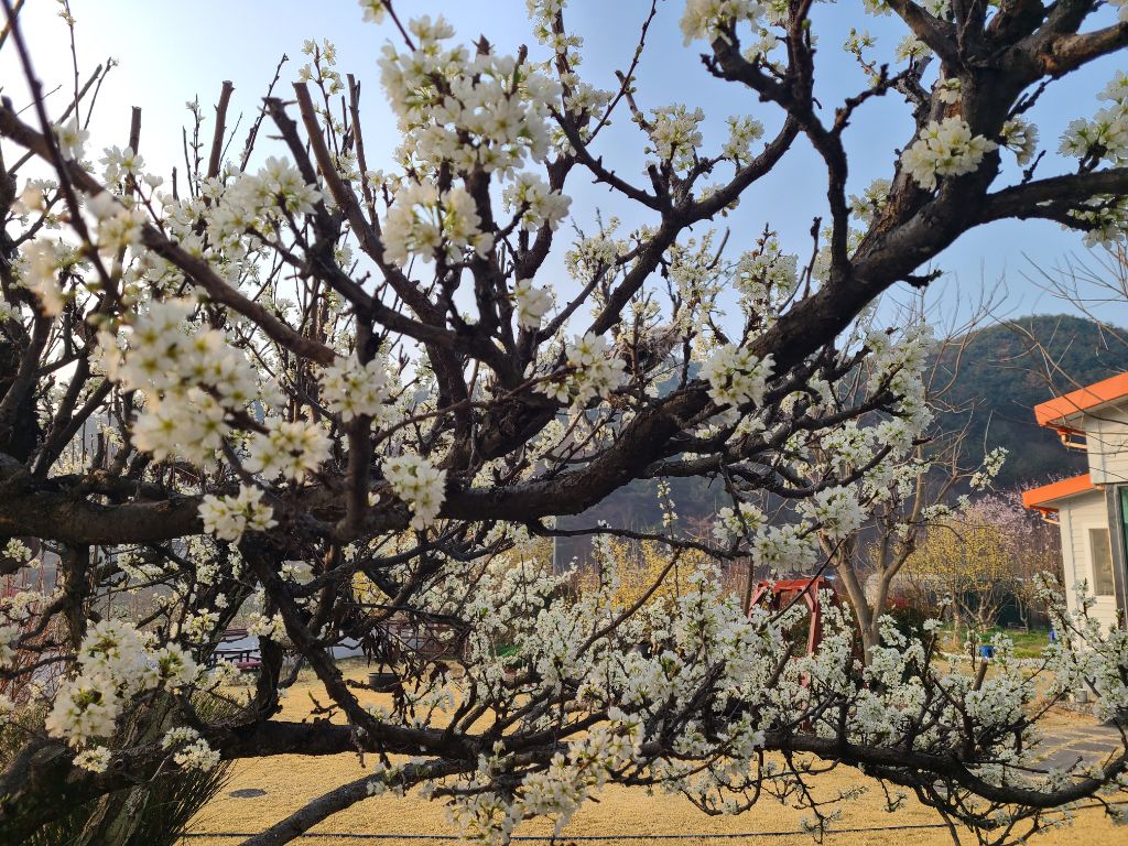 과수원나무 아래에 이름모를 풀꽃들이 피었다. 작고 앙증맞은 꽃들이 군락을 이룬 사이로 바랭이풀이 올라오더니 넒게 자리를 잡았다. 풀이 어릴 때는 쉽게 뽑히지만 옆으로 퍼지면 힘이 천하장사가 된다. 이미 쉬운단계를 넘어가서 힘들게 하나씩 뽑아서 들통으로 세번이나 날라 닭장에 넣어주었다. 닭들이 날개를 펴며 풀을 반긴다.
