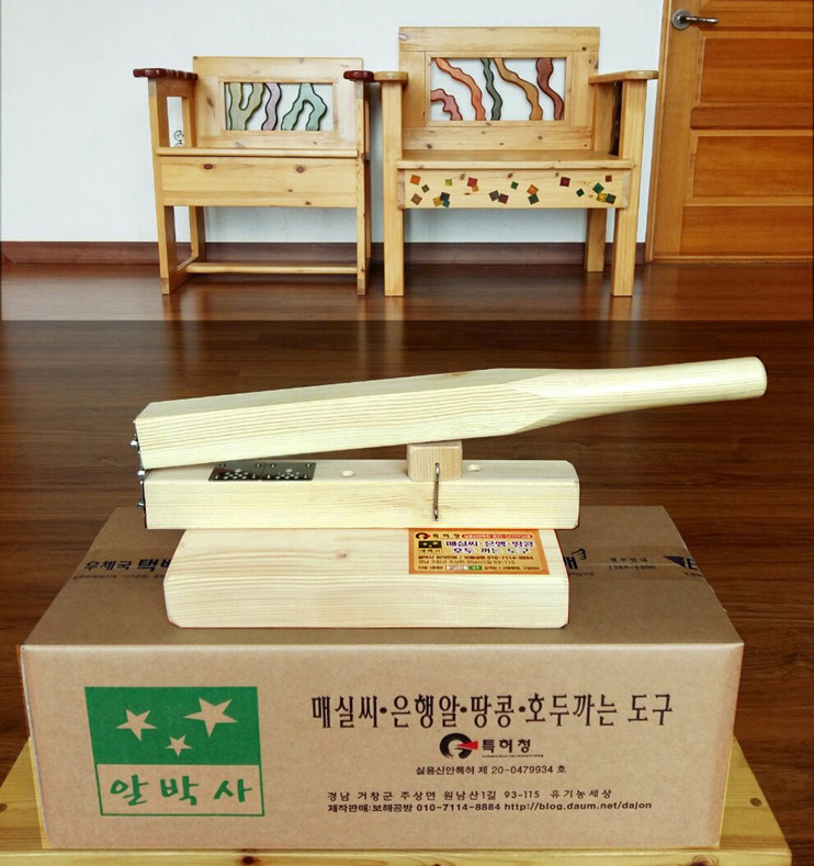 매실씨앗을 잘 분리하는 알박사입니다. 국내 하나뿐인 실용신안특허를 받은 만능 견과류탈피기입니다.
