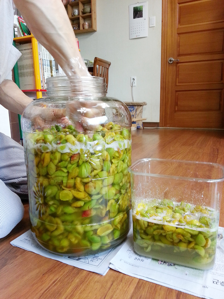 매실장아찌 설탕분해촉진을 위해 위 아래 저어주기