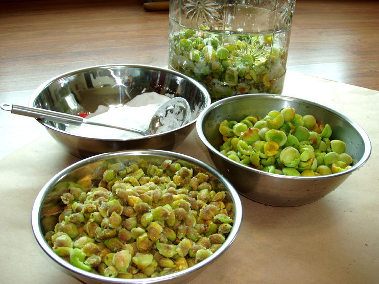 3. 씨앗이 분리된 매실을 처음에는 설탕으로 버무려 주면서 차곡 차곡 매실과 설탕을 번갈아