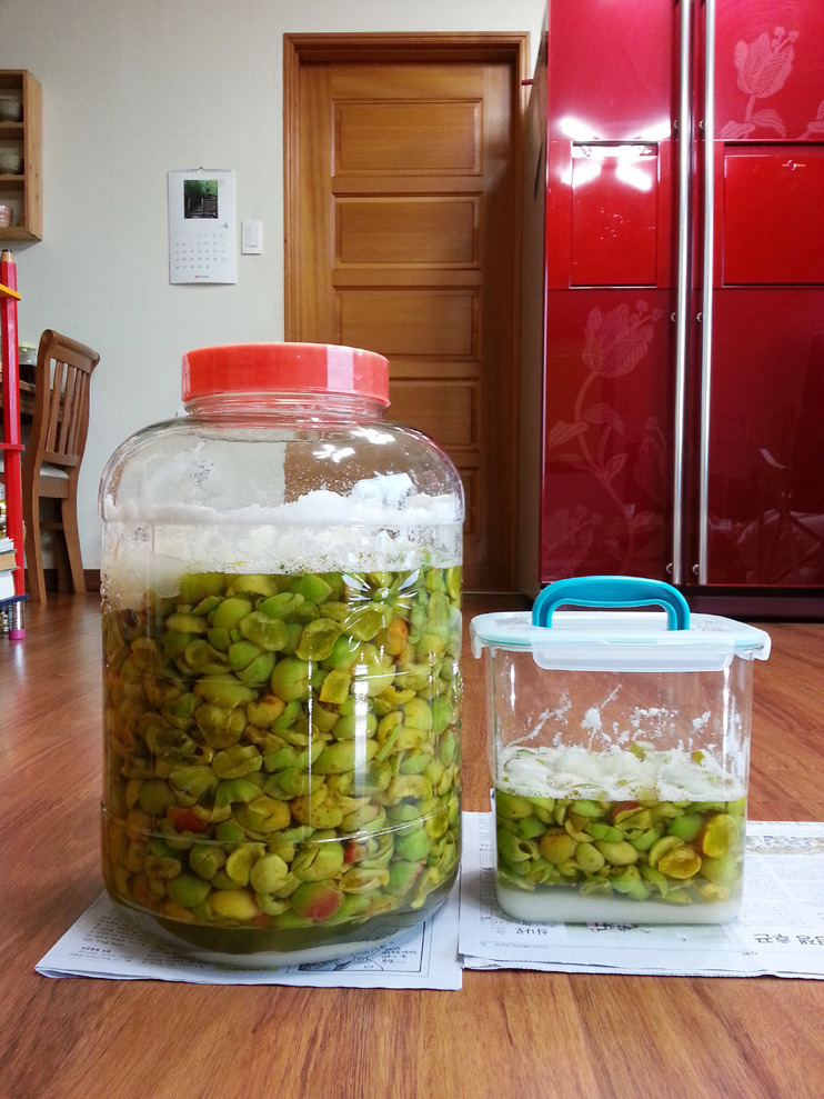 1.매실을 깨끗이 씻고 매실이 잠길 만큼의 물에 매실을 담궈 (밥숟가락 7숟가락)을 푼 엷은