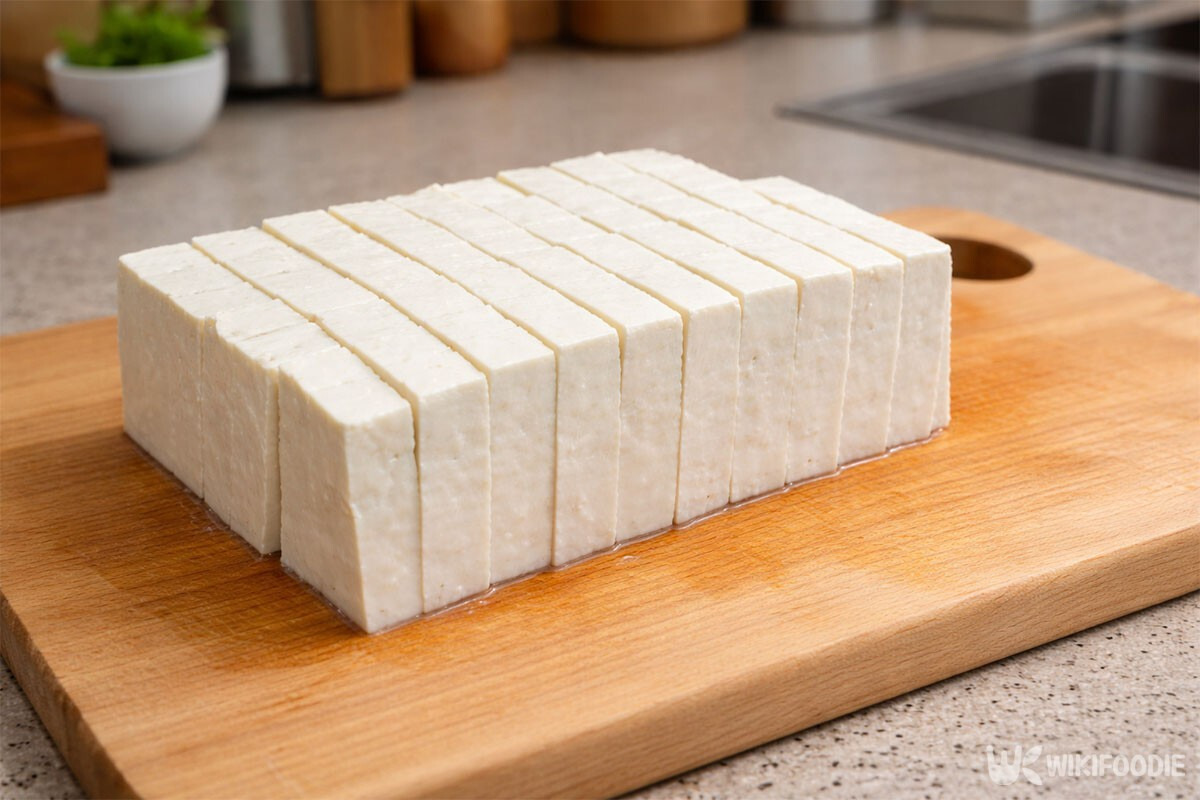 1. 두부를 약 1cm 두께의 정사각형 모양으로 썬다.