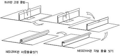 4) 방습지가 설치된 후에는 NED ZINK(티타늄 아연판)잇기가 시공되는 바탕 표면 위 NED