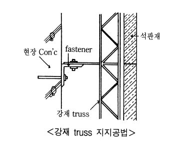 ㆍ 강재 truss 지지공법은 미리 조립된 강재 truss에 여러 장의 석판재를 지상에서 짜맞춘 후,