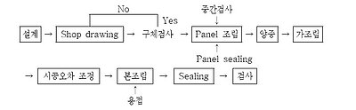 ㆍ설치시의 조정과 층간변위를 고려하여, 1차 연결철물(주로 앵글형)과 2차 연결철물(주로 평