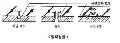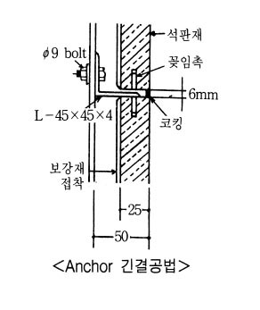 ㆍ구체에 석재판을 붙일 때 긴결철물을 써서 고정하는 공법이다.