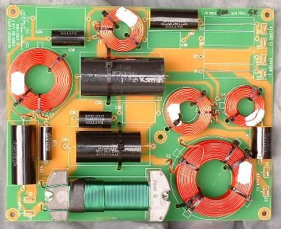 ● 3웨이 패시브 크로스오버 기판. 스피커 유닛과 함께 캐비닛에 장착된다.