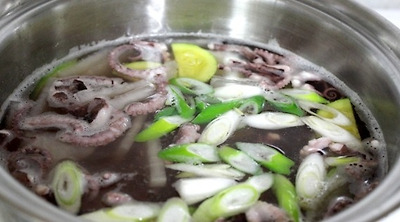육수에다가 무, 버섯, 대파를 넣고 끓이면서 국간장과 마늘로 간을 해줍니다. 소금도 조금 넣어주시구요. 무를 넣어주면 연포탕은 더욱 시원한 맛을 낼 수 있어서 필수 재료입니다. 그런 다음 산낙지는 미리 손질해서 머리만 잘라 탕으로 먹도록 준비해두시면 좋습니다. 연포탕 끓이는법 재료 참 쉽죠?