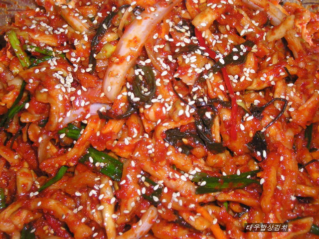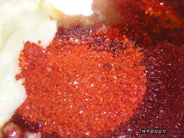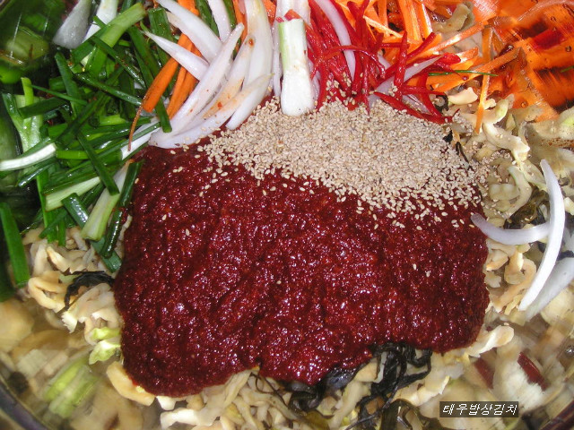 찹쌀풀, 깨소금,참기름, 물엿, 설탕, 고춧가루.멸치액젓,