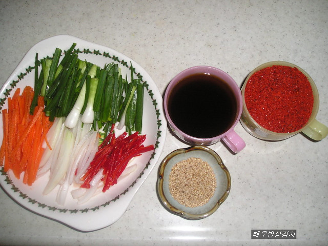 양념장: 쪽파, 홍고추,양파, 당근,다진마늘, 다진생강,