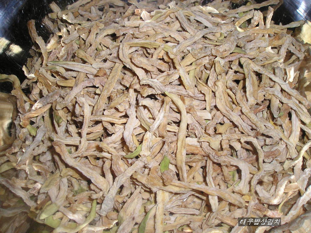 잘 말려둔 무말랭이를 물에 불려 주세요.