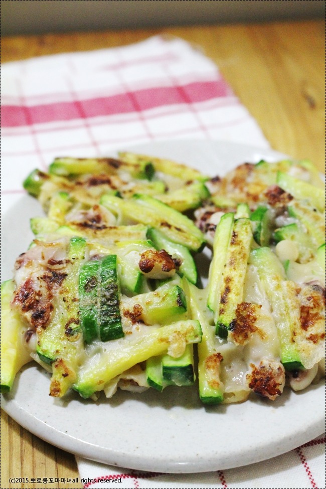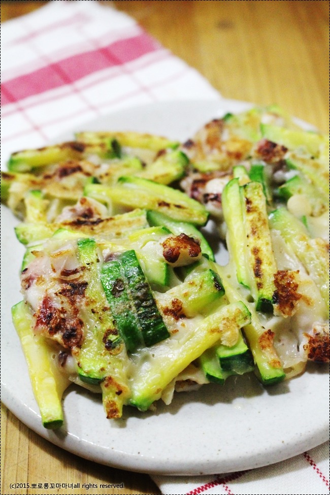 애호박 특유의 단맛이 어우러져서 맛있는 전이랍니다.