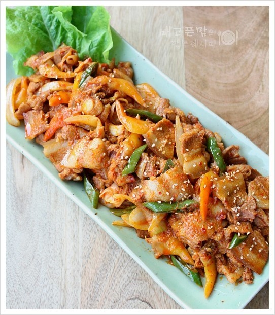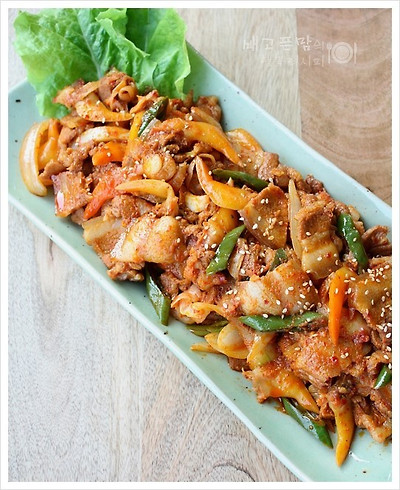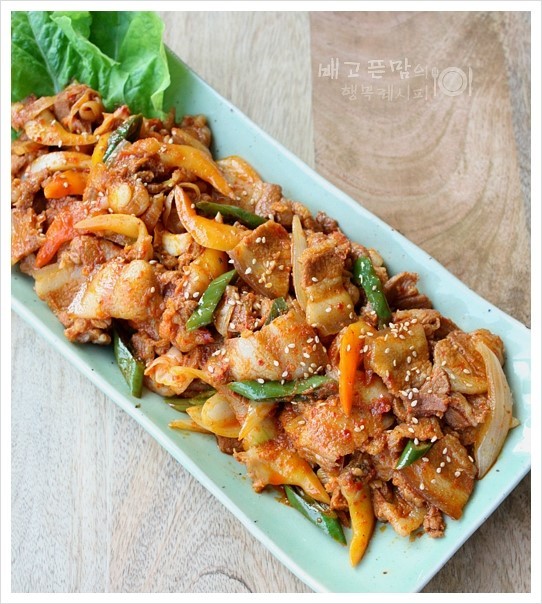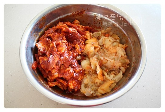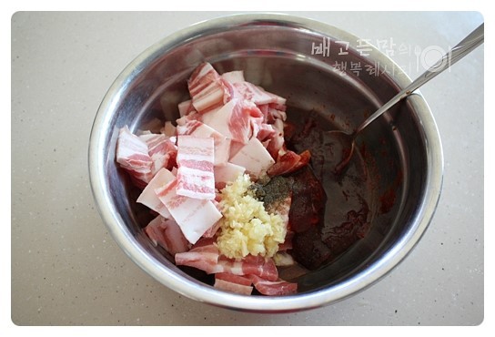 삼겹살을 버무린 여분의 양념에 대충 버무려 주었습니다.