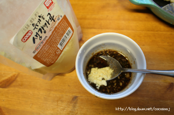 생강가루 1/2술, 참기름 1술, 후추조금 , 대파 조금, 배즙 또는 과일즙 1팩.)
