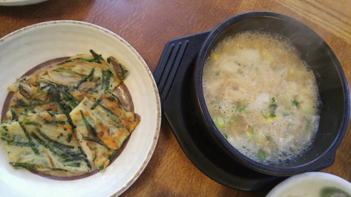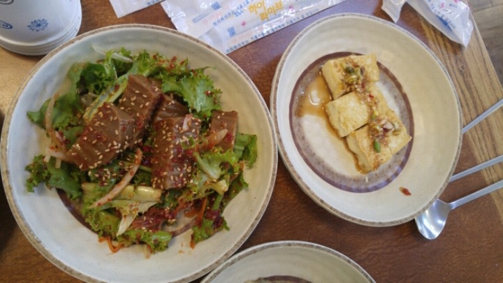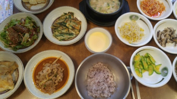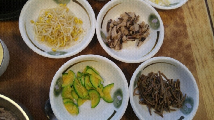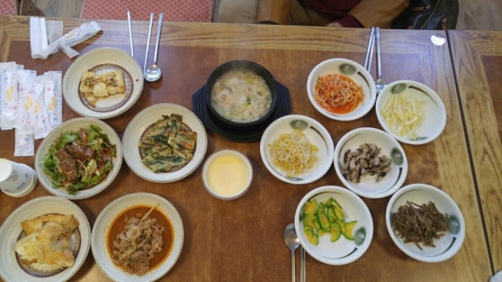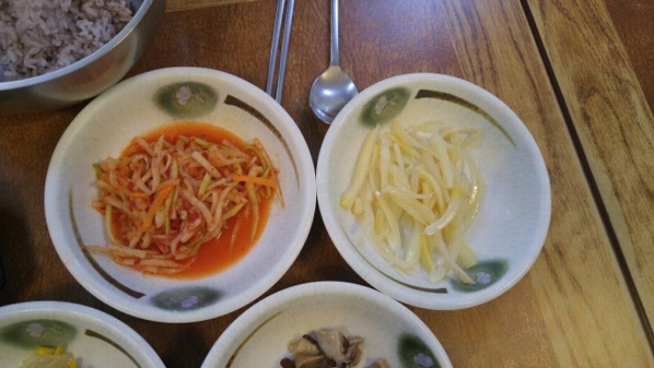 한상에 찌개 하나씩 있고 공동반찬에 당황한듯 앞접시를 찾아요