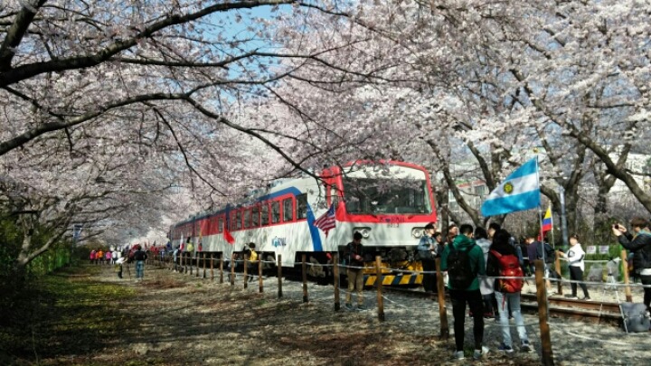 그런데 군항제 기간에는 벚꽃 테마역으로 벚꽃을 구경하기 위해 많은 관광객들이 찾고 있습니다.
