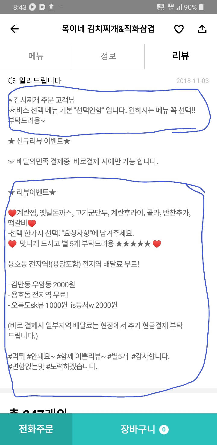 감만동...우암동은 2000원 배달료가 붙는군요.,