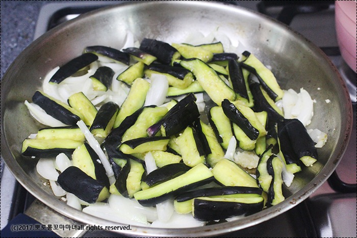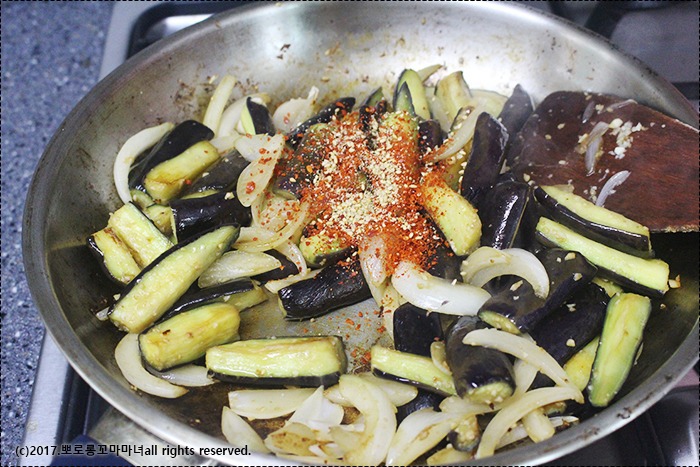 그때 가지를 볶아주세요.