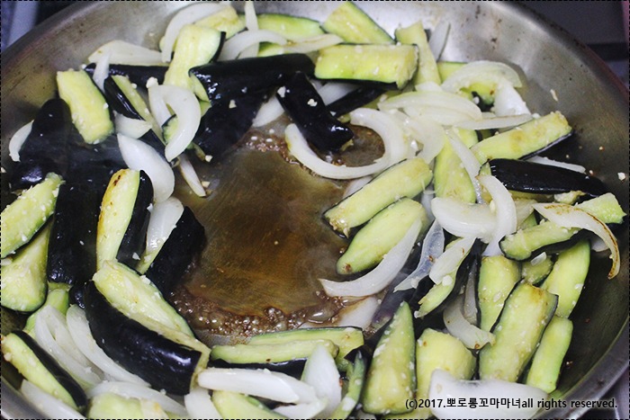 가지가 얼추 볶아지면..