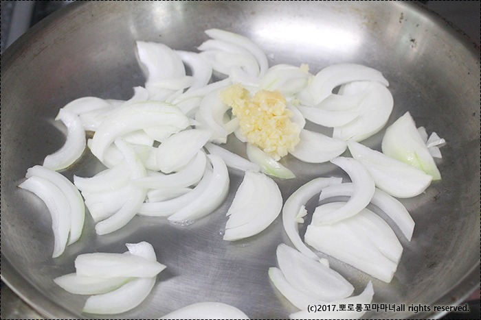 채썬 양파와 다진마늘, 오일 약간 넣고..