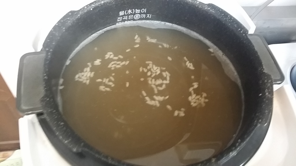 밥솥에서 밥이 될동안 갈아앉은 상태입니다.