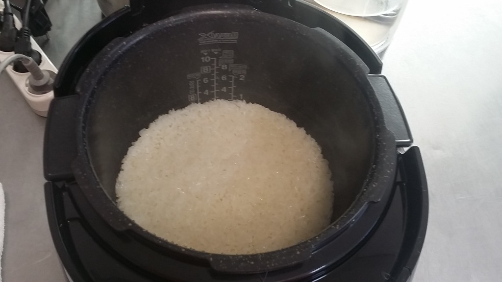 10인용밥솥인데, 쌀양 보이시죠?(찹쌀밥이라 물을 많이 먹지 않았서 쌀양이나 밥이 다 지어졌을때와 비슷합니다)