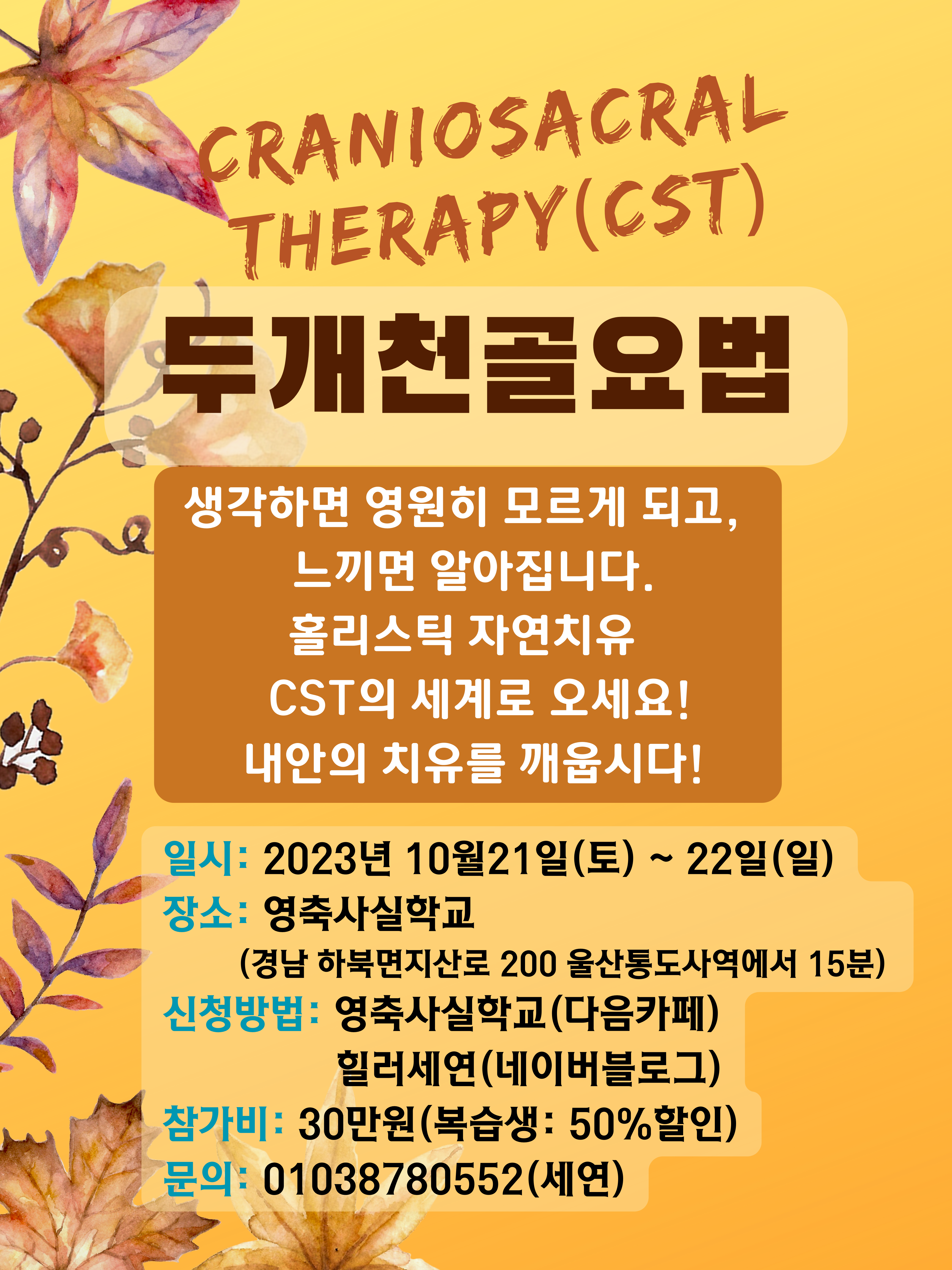 10월 두개천골요법 CranioSacral Therapy CST 교육 프로그램을 안내합니다.