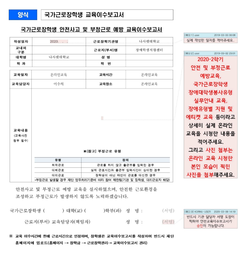 안전교육이수보고서 양식도 올려드립니다.