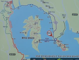 ○ 산행코스: 붕어섬 주차장 ~ A코스 둘레길(1.9km) ~ B코스둘레길(2.1km) ~ 원점회귀 ~ 붕어섬 출렁다리