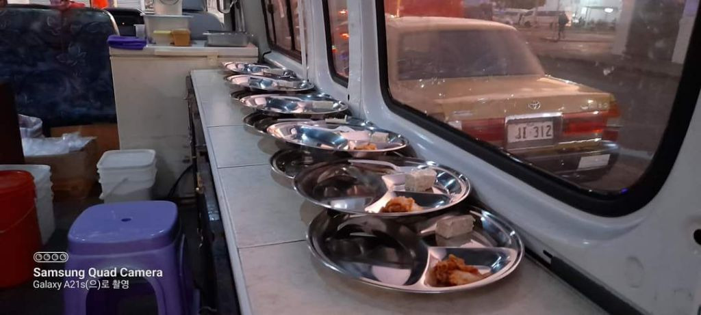 오늘 아침 아침에도 줄을 서기는 섯지만 말을 잘듣지 않아 나는 그만 속이 상해서 밥차의 문을 닫아버렸다.