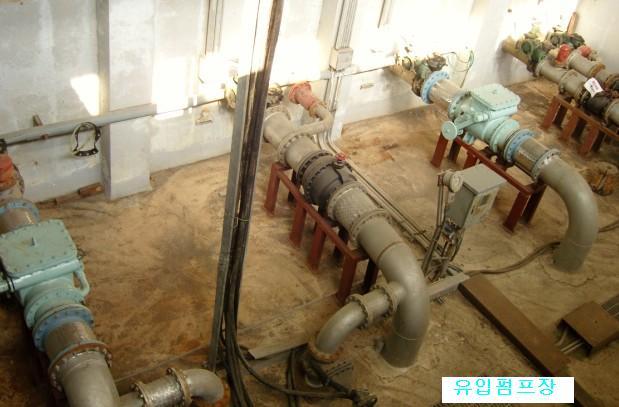 플라이밸브와 역지변을 설치 하였다. 펌프실에는 펌프, 모타 및 기타 부속품의 수리 및 해제