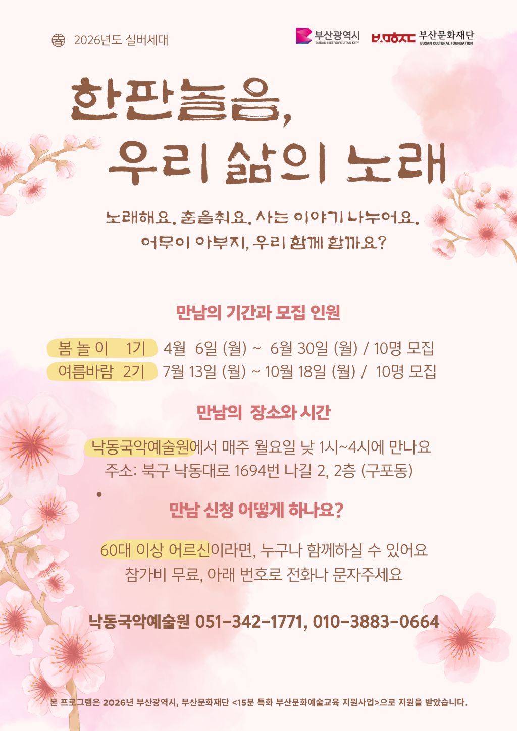 한판놀음 우리삶의 노래(국악놀이) 작성자해당|작성시간26.03.09|조회수9 목록 댓글 0 글자크기 작게가 글자크기 크게가 신청하세요재미있는 국악놀이 무료입니다~강사세분 부강사한분 함께 합니다부산지역 우선 타지역도 신청가능~^^ 다음검색 현재 게시글 추가 기능 열기 북마크 공유하기 신고 센터로 신고 댓글 댓글 0 댓글쓰기 답글쓰기 댓글 리스트