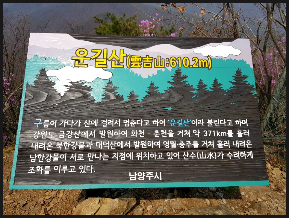 희뿌연 스모그로 북한강의 좋은 풍광이 못내 아쉬운 산행은 서거정이 동방 제일의 사찰이라고 극찬한 수종사의 아름다운 풍경과 오르내림이 많은 운길산-예봉산 종주길 산행에 화사하게 만개한 진달래꽃을 길 벗삼아 산행내내 발걸음 가벼운 산행을 한다.