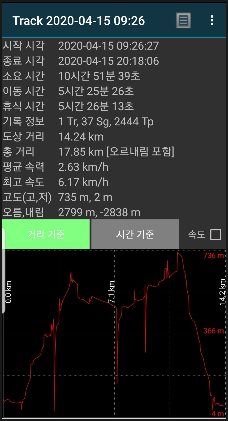 ▣ 산행코스 : 14.2km, 10시간51분(실산행시산 5시간25분, 2.63km/h)