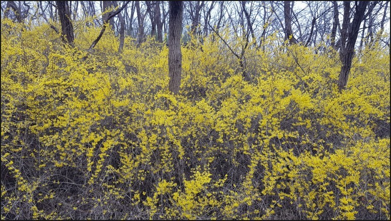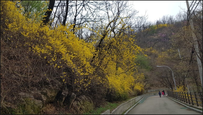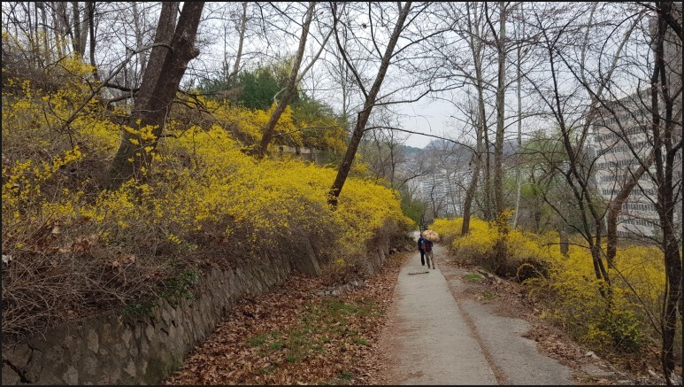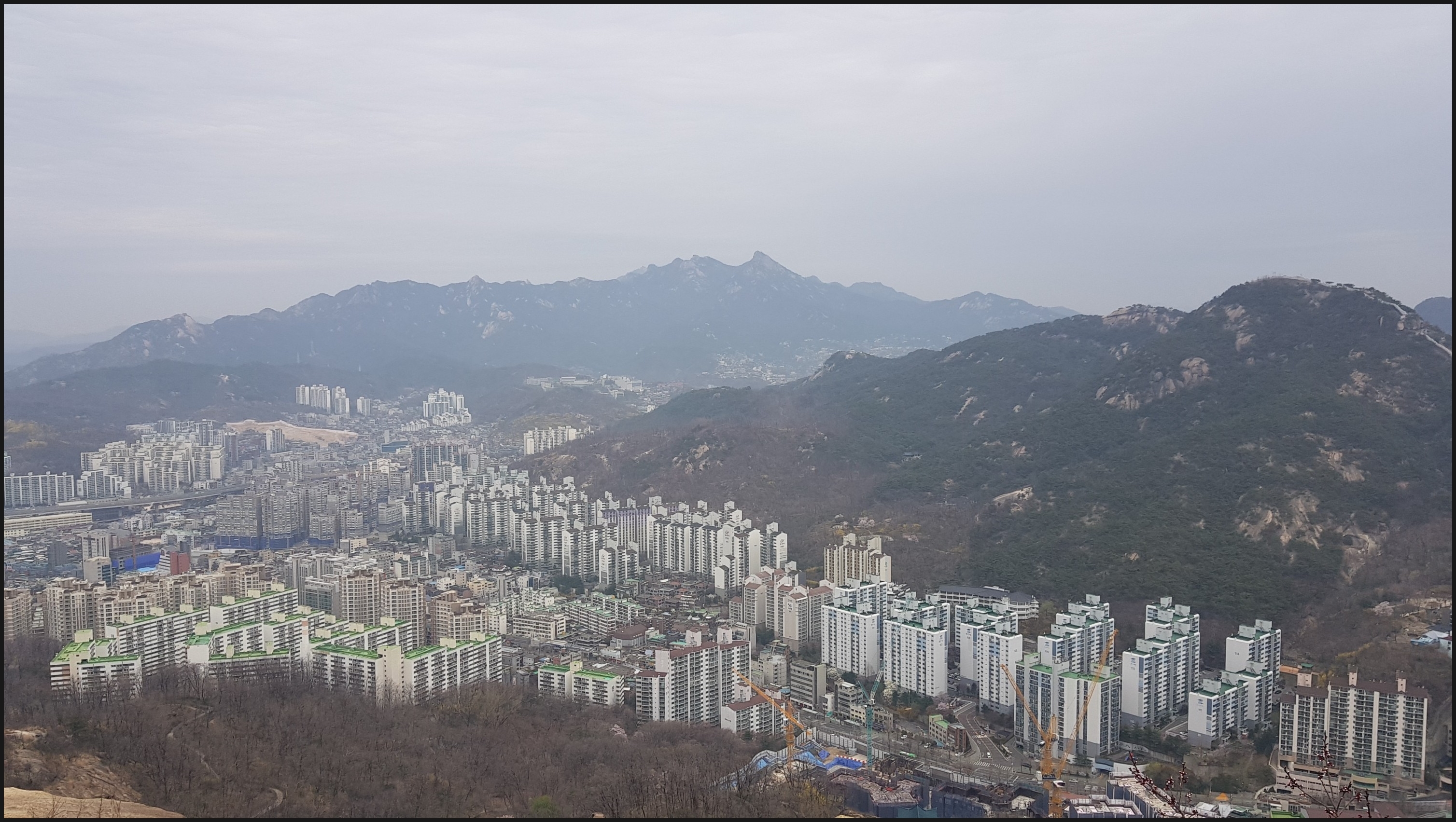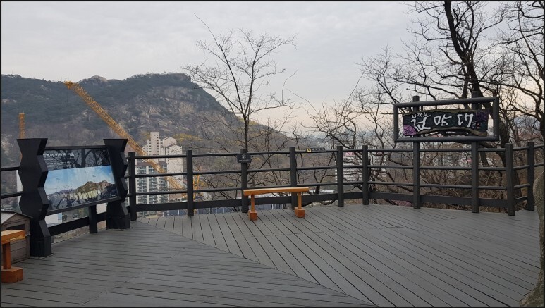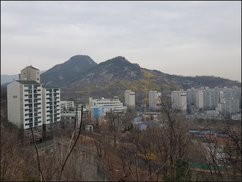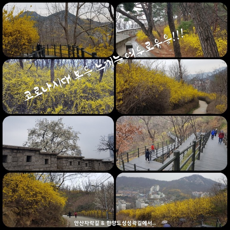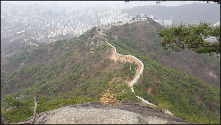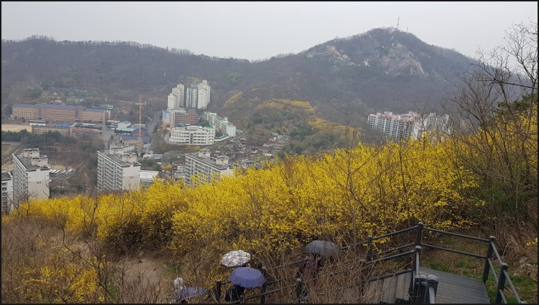 안산자락길에서 바라본 인왕산 성곽과 개나리동산 풍경