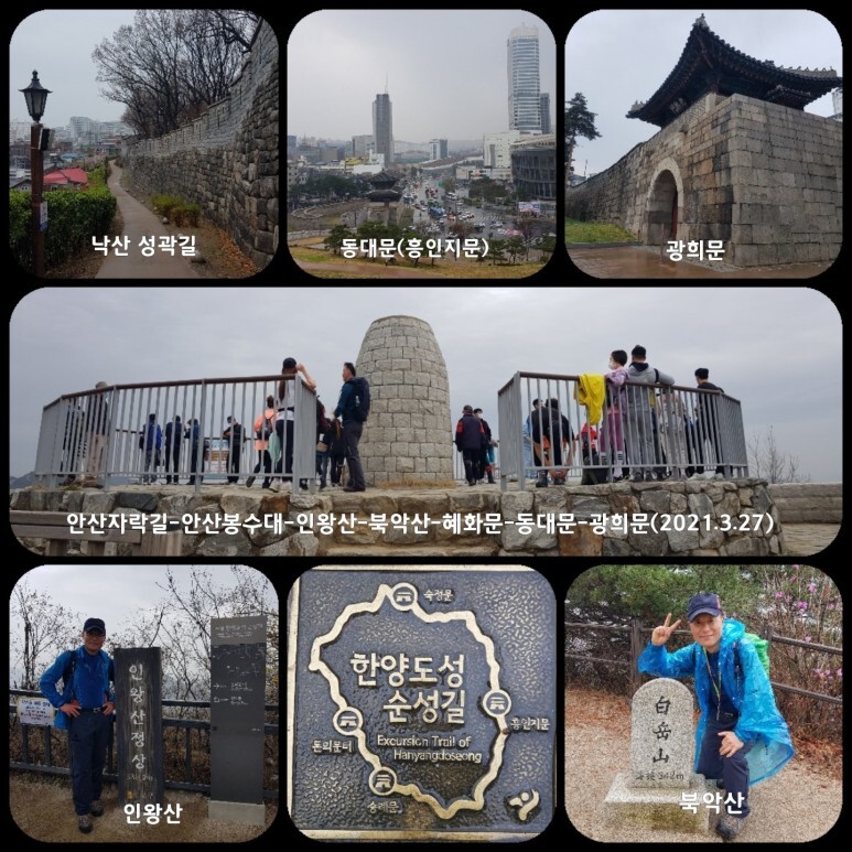 안산자락길(안산)-한양도성성곽길(인왕산-북악산-혜화문-낙산-동대문-광희문) 우중 산행(2021.3.28).....[ I ]
