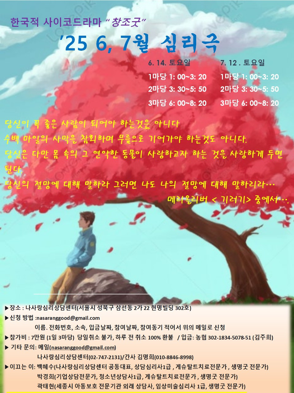Tel: 나사랑 심리상담센터(02-747-2131), 간사 김명희(010-8846-8998)