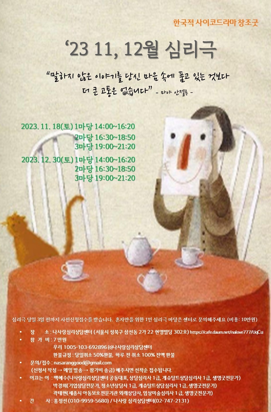 한국적 사이코 드라마 "창조굿" 11월,12월 안내