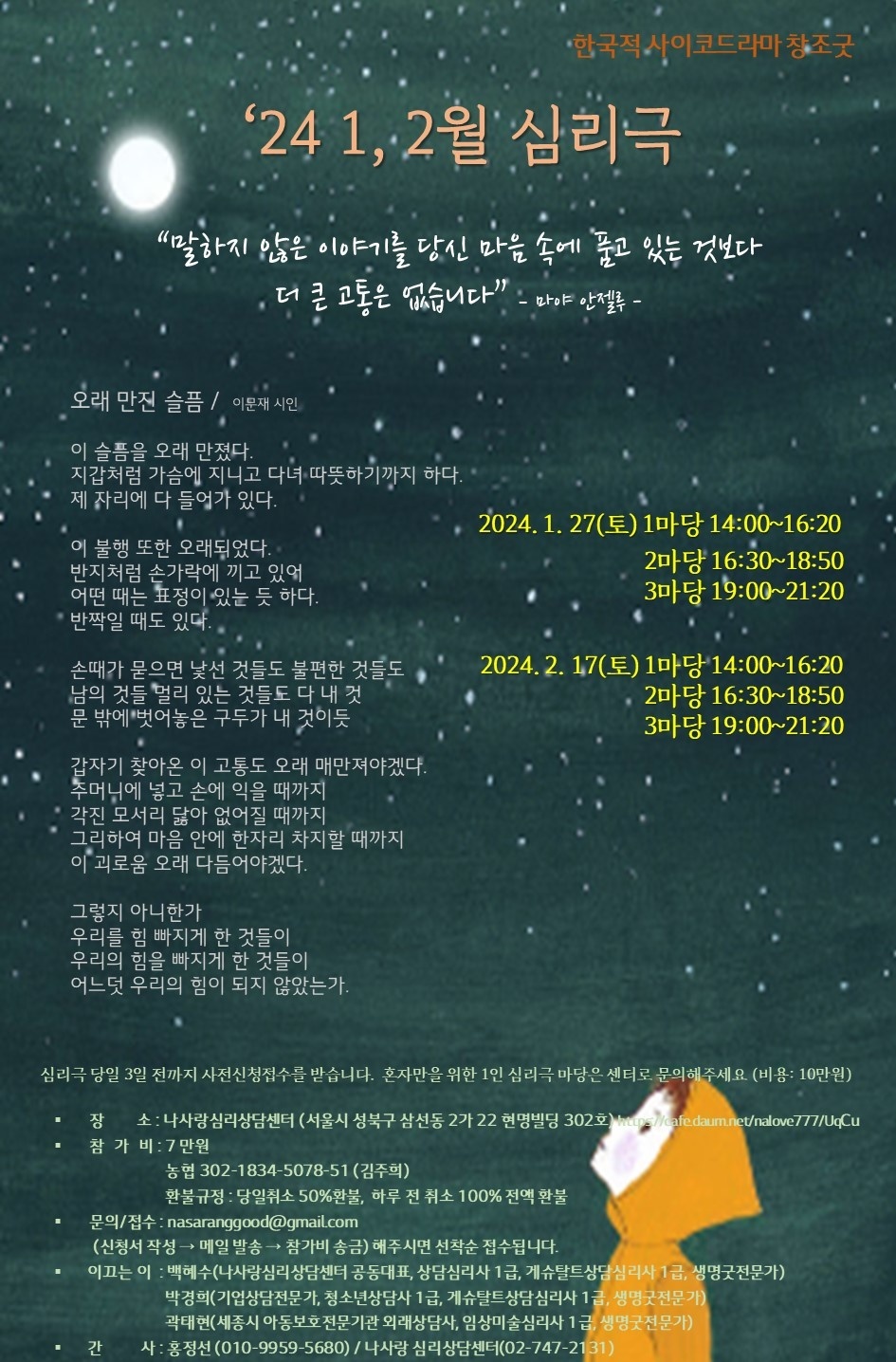 한국적 사이코 드라마 "창조굿" 2024년 01월, 02월 안내