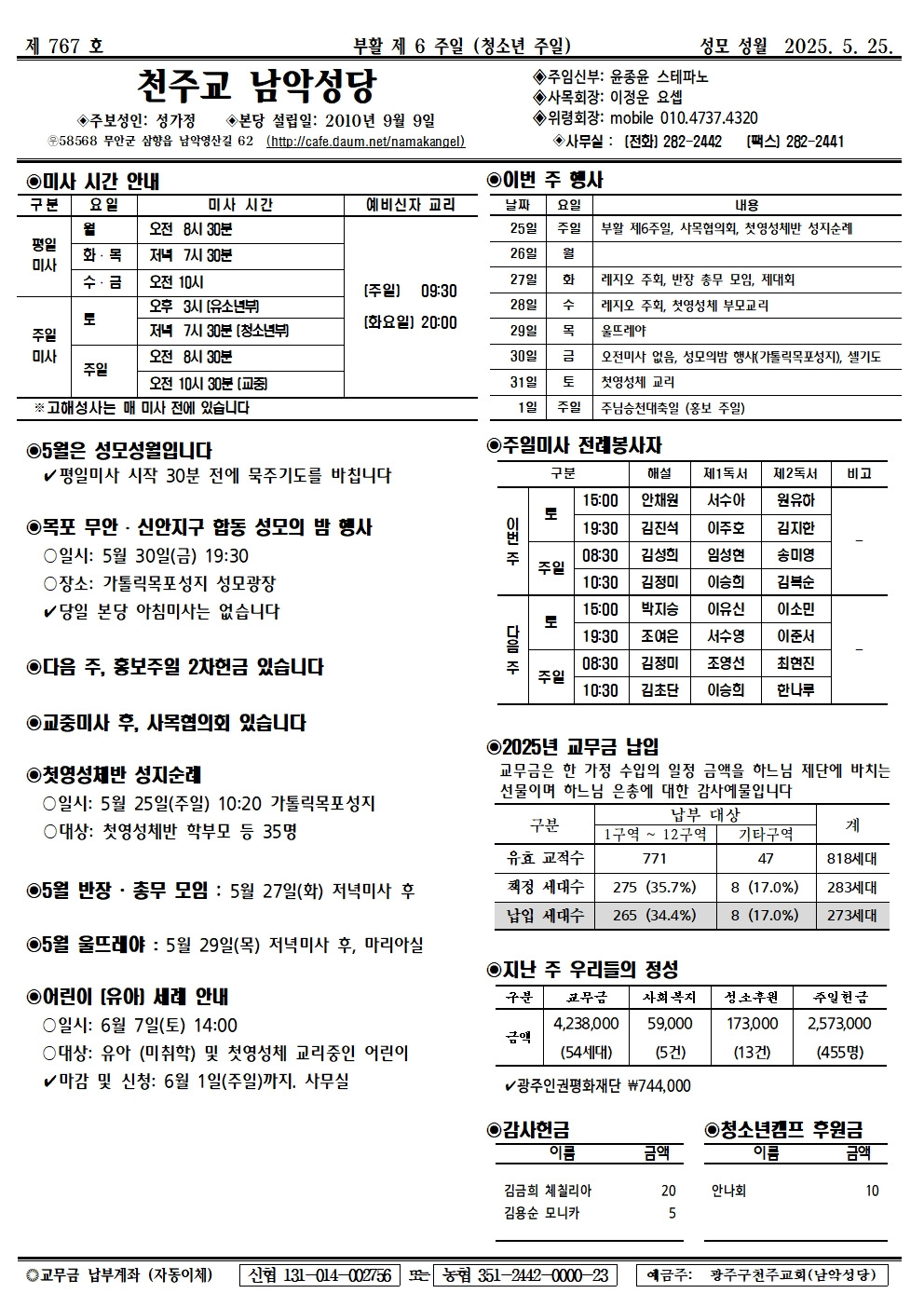2025년 부활 제6주일 (청소년 주일 2025. 5.25.) 작성자이상엽(라우렌시오)|작성시간25.05.23|조회수151 목록 댓글 0 글자크기 작게가 글자크기 크게가 다음검색 현재 게시글 추가 기능 열기 북마크 공유하기 신고 센터로 신고 댓글 댓글 0 댓글쓰기 답글쓰기 댓글 리스트