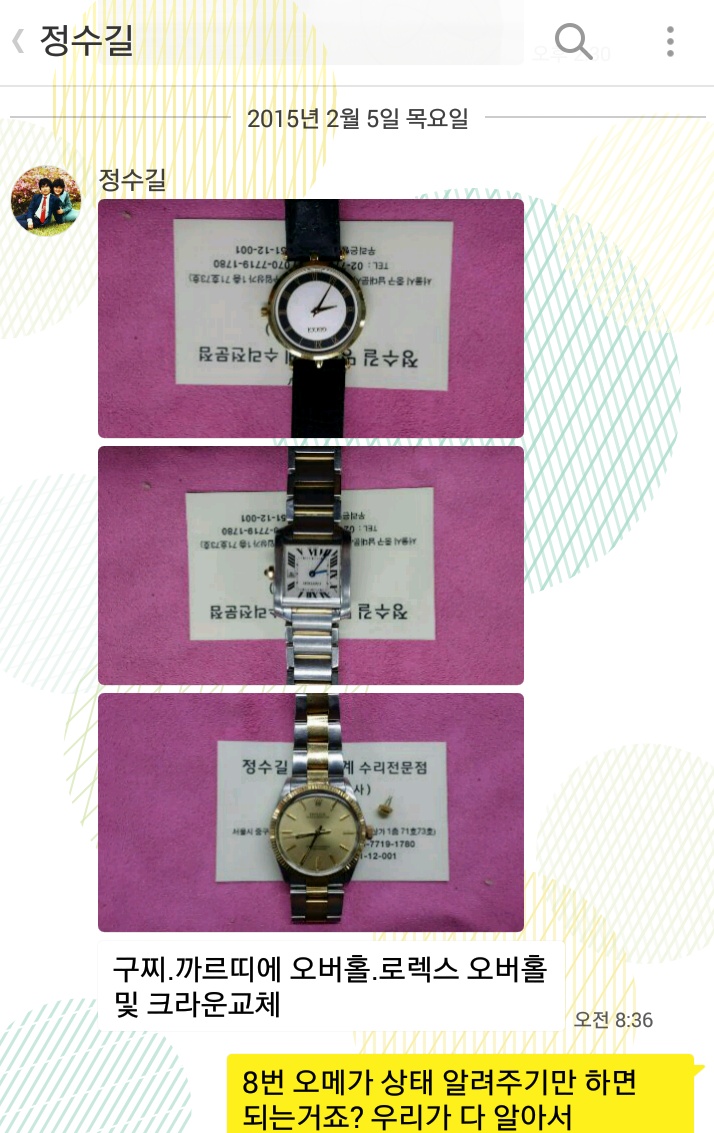 시계수리 완료사진은 아버지께서 직접 매장에서 사진촬영 후 아들인 저에게 전송해 주시면 제가 편집하여