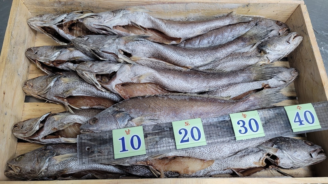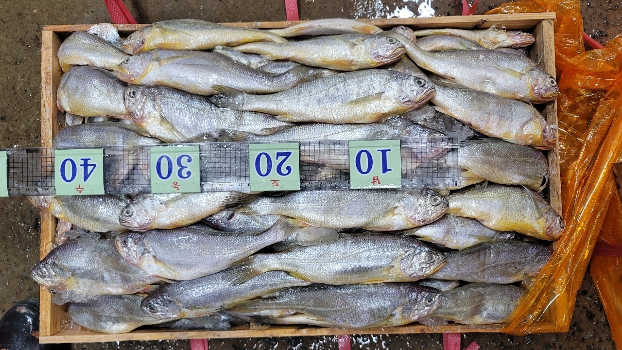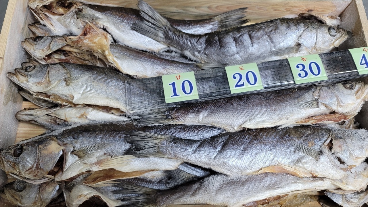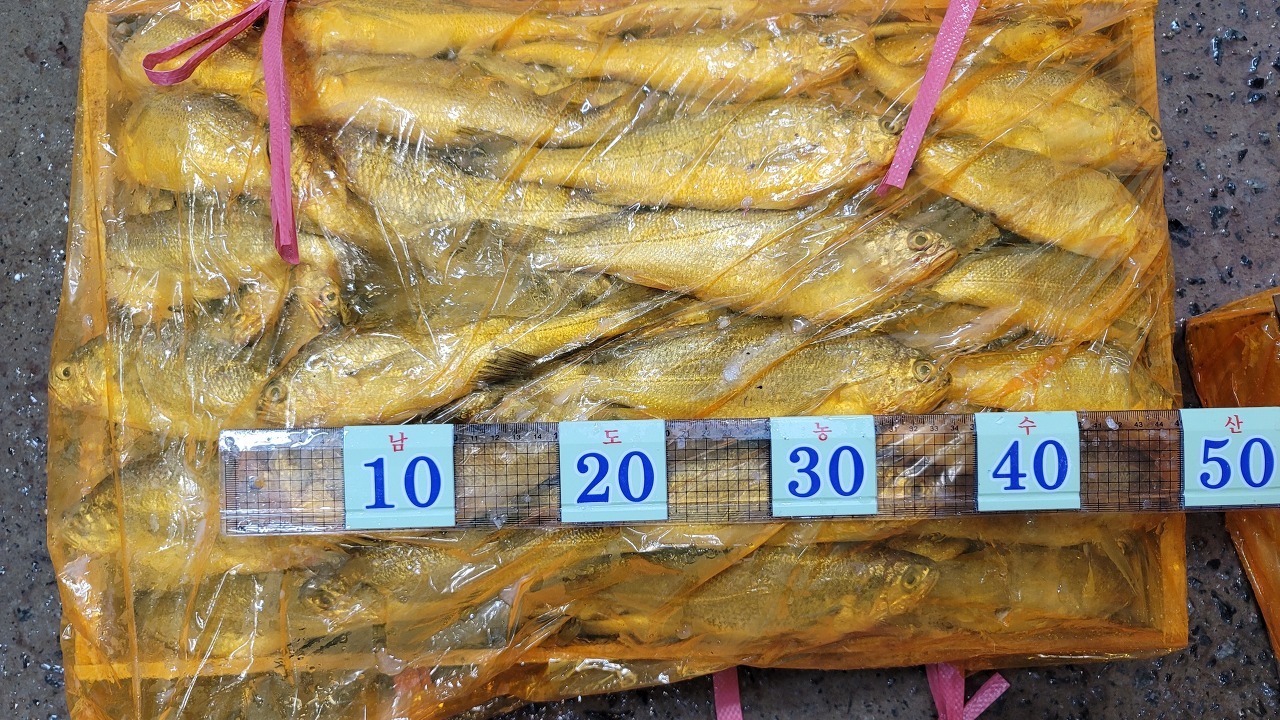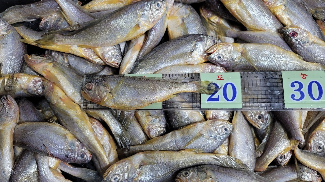바라조기란? 크기 차이가 심한 참조기를 상자에 담은 것 입니다.