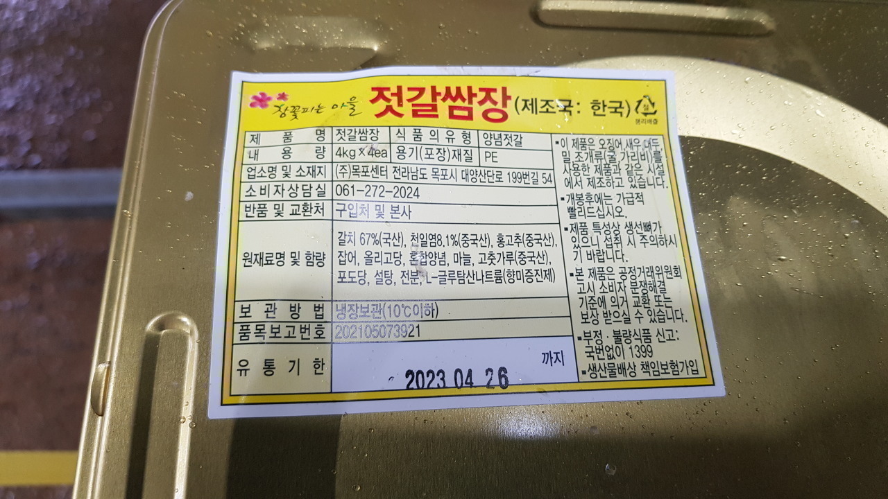 갈치67%입니다 (사진에 양념 표시 되어 있어요)