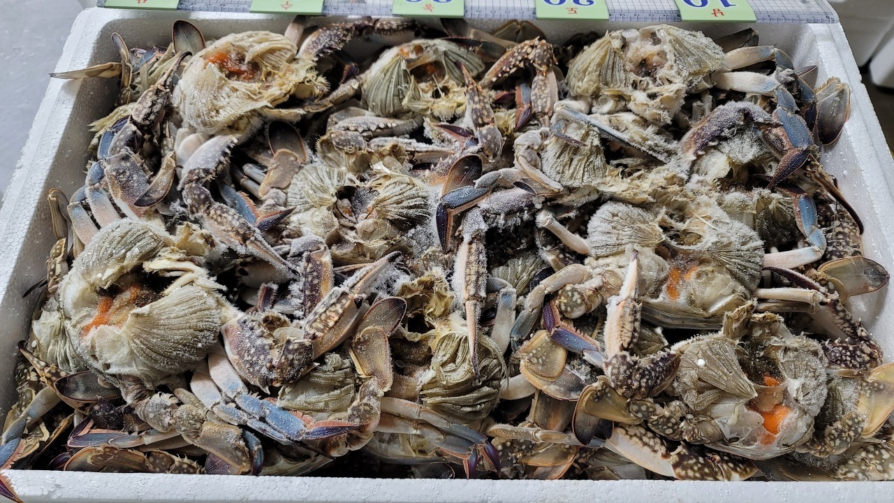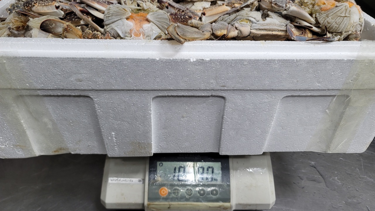 1kg4~5마리를 게뚜껑 제거하고 몸뚱아리만 10kg으로 맞춰서 냉동하였습니다.