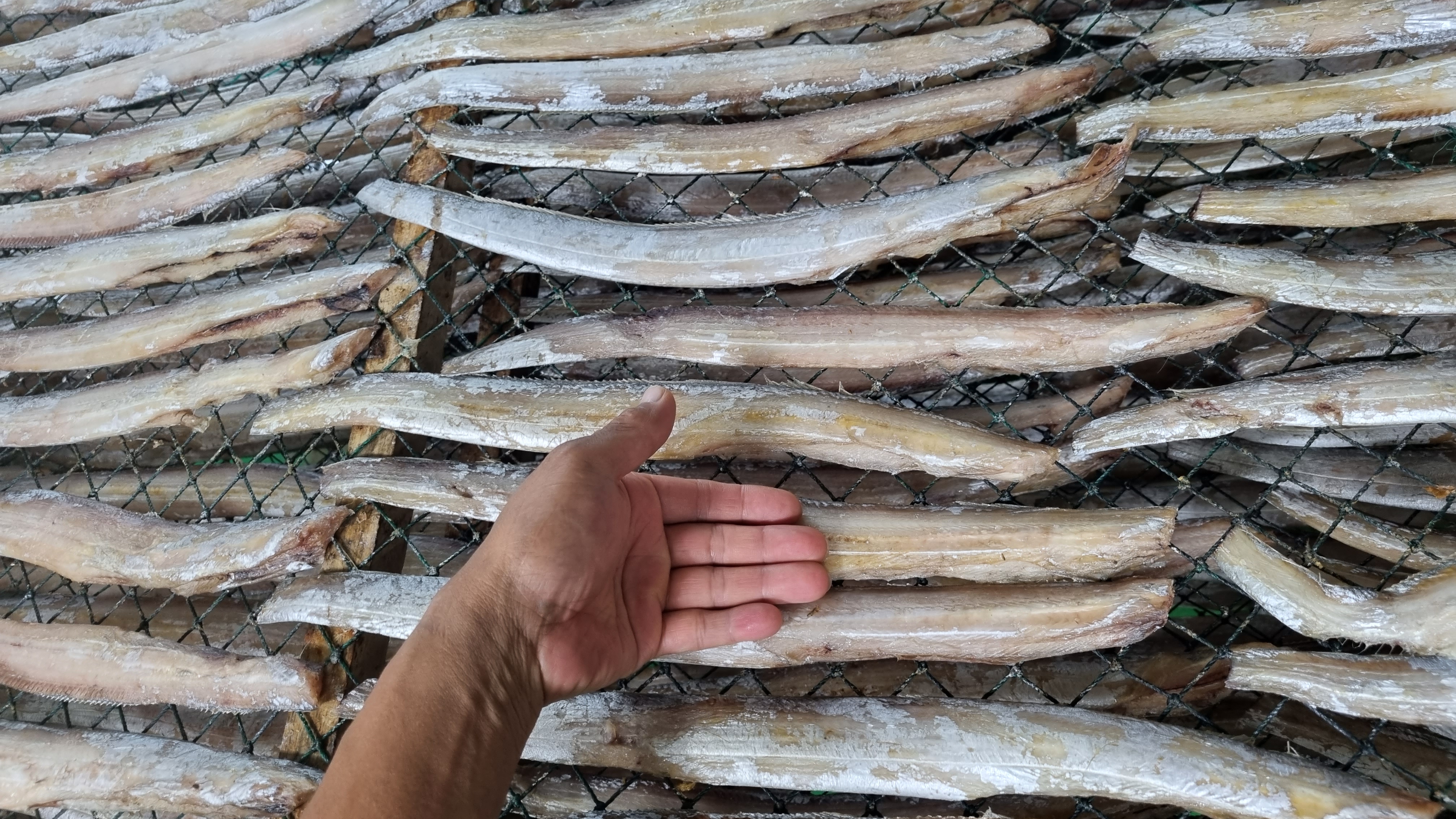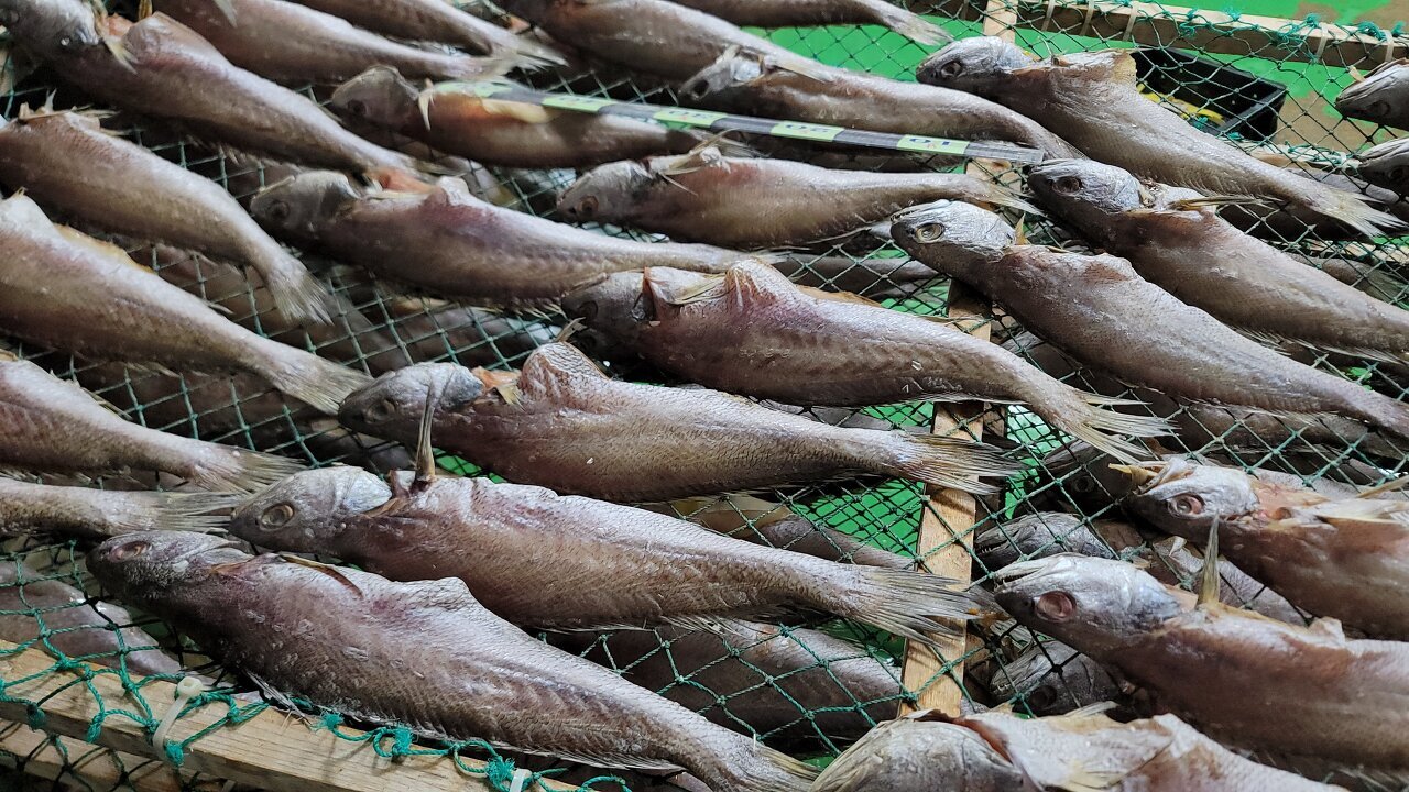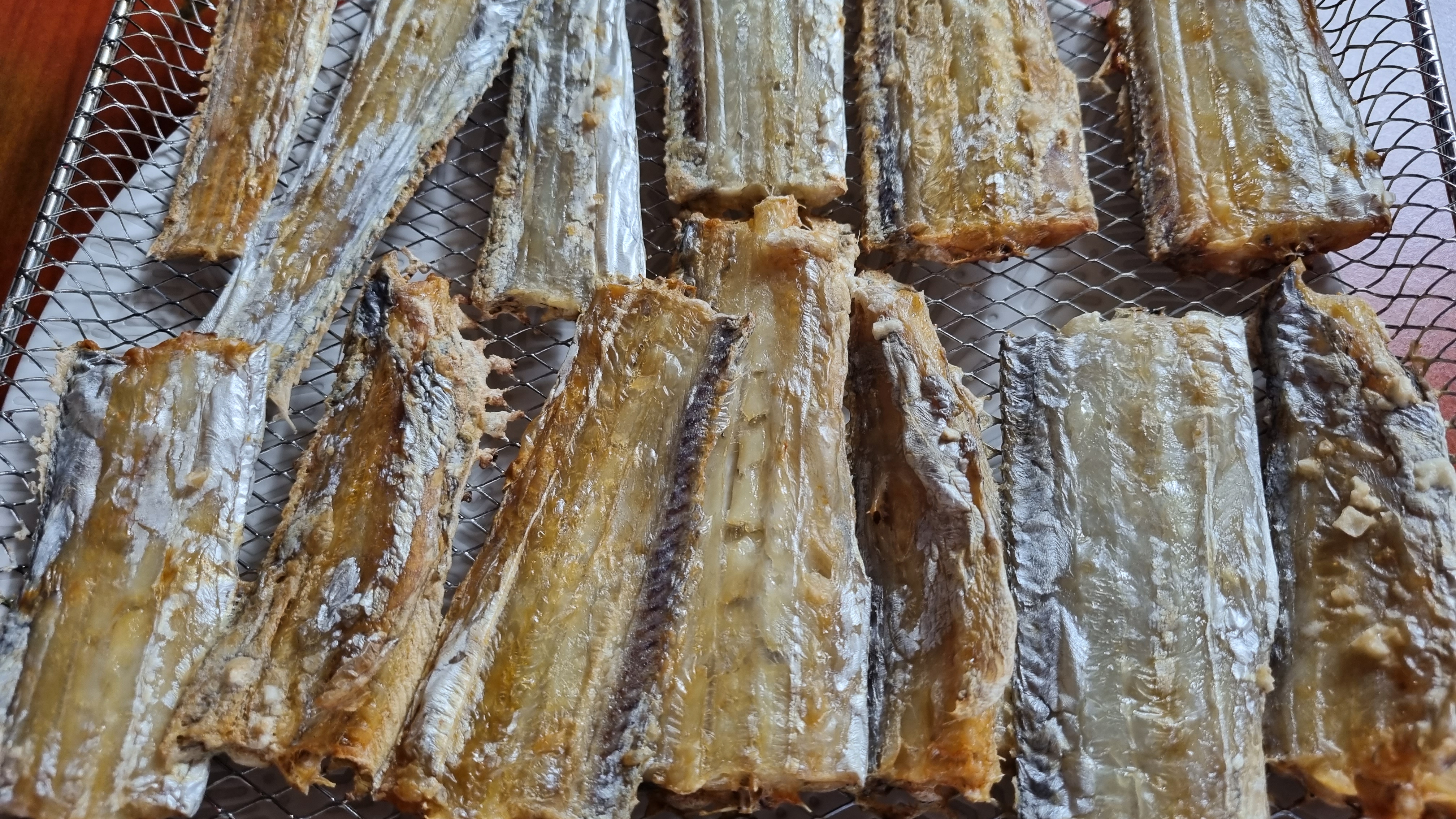 소금간하여 반건조 하였으며 뱃살 상한 것 섞여 있어서 잘라 낸 것도 있습니다.
