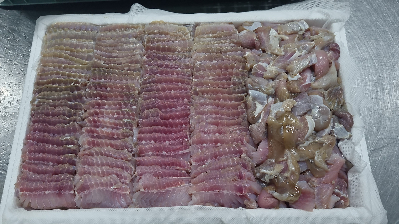 사진처럼 손질했으며 뼈, 내장 버렸고 애는 냉동하였습니다.