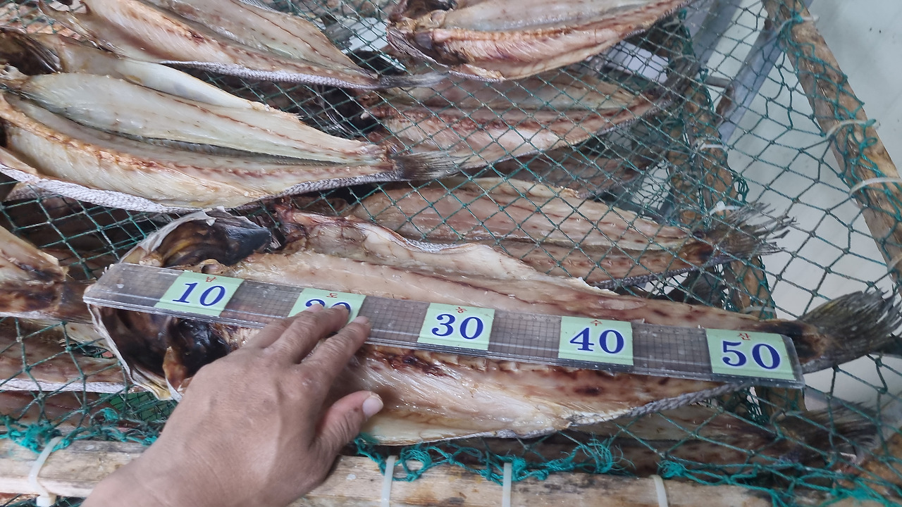 한상자 실량 18~20kg정도 450마리 이상이며 마리당 15cm 내외 입니다.
