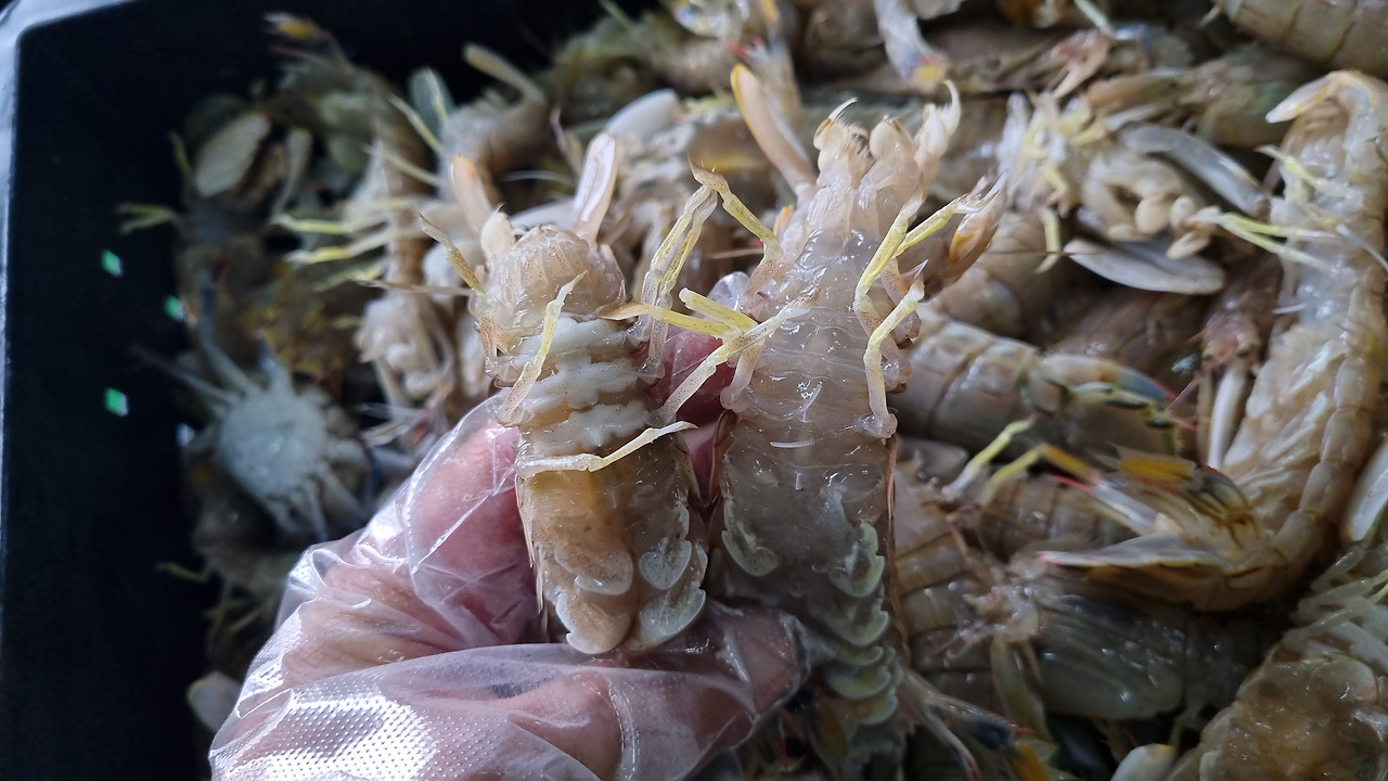 살아있는 갯가재를 냉동하였습니다.